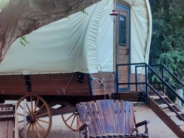The Pioneer experience has never felt so luxurious as what you will find with our beautiful glamping wagon. This 1800s style wagon offers a pioneer experience while the modern conveniences make for wonderful comfort. Come to Bluff and learn about the pioneers who settled this town, then enjoy a unique historical adventure with your stay in a covered wagon.